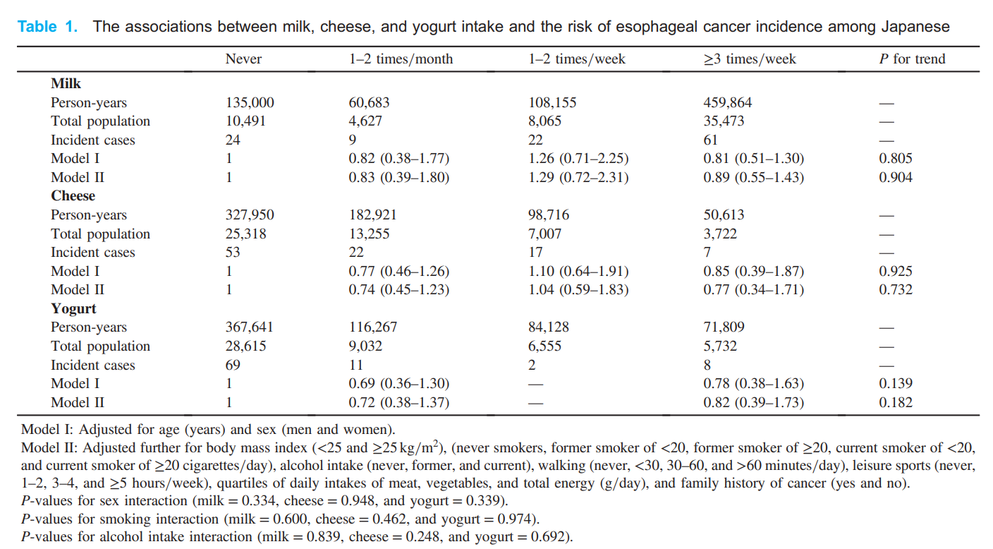 超15萬人13年隨訪研究:到底牛奶、奶酪、酸奶和食管癌發(fā)生有關(guān)系嗎?答案在這!