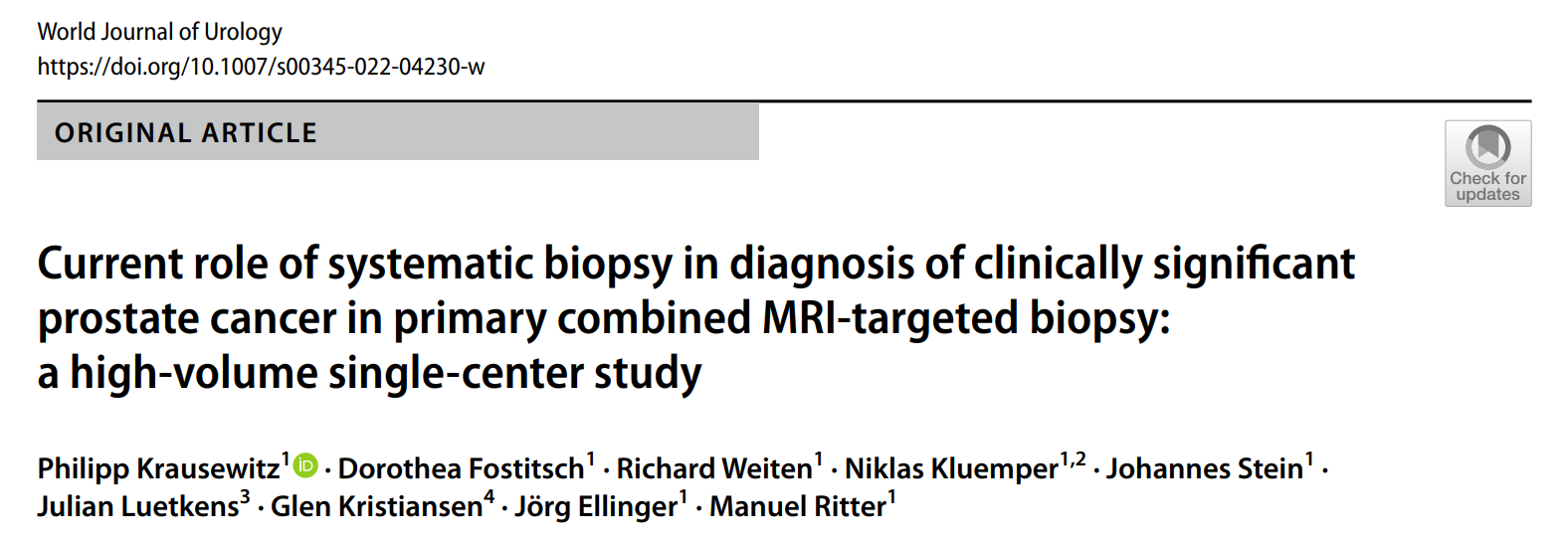 Philipp Krausewitz, Dorothea Fostitsch, Richard Weiten et al. Current role of systematic biopsy in diagnosis of clinically significant prostate cancer in primary combined MRI-targeted biopsy: a high-volume single-center study. World J Urol. Dec 2022