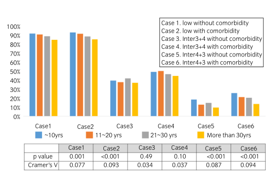 研究包括922家日本醫(yī)院,調(diào)查的項目有泌尿科醫(yī)生的職業(yè)年齡、性別、工作地點、擁有的治療設(shè)備、日常工作的專業(yè)領(lǐng)域、泌尿科癌癥的專業(yè)領(lǐng)域,以及六個假設(shè)的AS病例。這些病例按Gleason評分進行分類:3+3低風(fēng)險PCa,3+4中風(fēng)險PCa,以及4+3中風(fēng)險PCa,每個病例有或沒有合并癥。并發(fā)癥定義為心血管疾病或需要抗凝血治療的疾病。