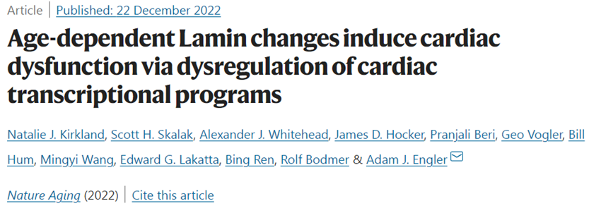 Natalie J. Kirkland et al. Age-dependent Lamin changes induce cardiac dysfunction via dysregulation of cardiac transcriptional programs. Nature Aging, 2022, doi:10.1038/s43587-022-00323-8.