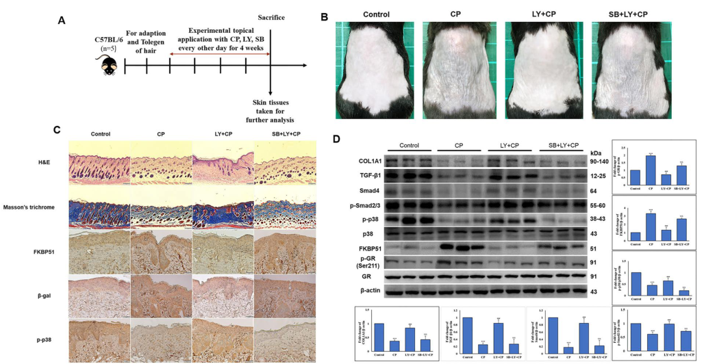 Int. J. Biol. Sci: LY294002通過(guò)皮膚p38逆轉(zhuǎn)糖皮質(zhì)激素誘導(dǎo)的衰老和膠原合成減少