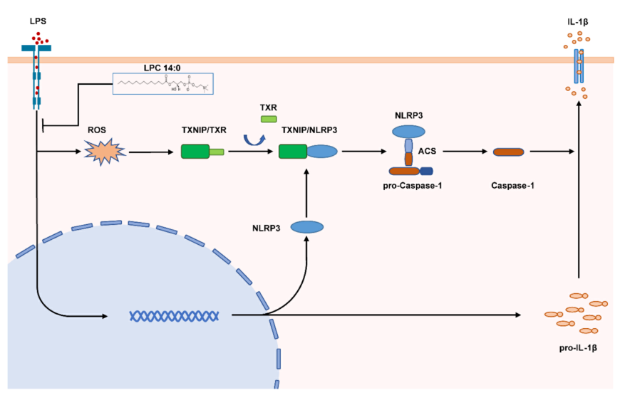 研究者發現LPC 14:0可以抑制內毒素誘導的炎癥反應和氧化應激,這種保護作用是通過抑制內毒素誘導的NLRP3炎性小體的激活來實現的。LPC 14:0可作為預測CAP嚴重程度的一種新的生物標志物。此外,研究者對LPC 14:0在動物和細胞模型中的作用的探索加強了它作為治療靶點的前景,以提高CAP的臨床療效。