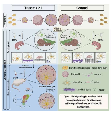 Mengmeng Jin,Ranjie Xu,Le Wang,et al. Type-I-interferon signaling drives microglial dysfunction and senescence in human iPSC models of Down syndrome and Alzheimer's disease,Cell Stem Cell (2022). DOI: 10.1016/j.stem.2022.06.007