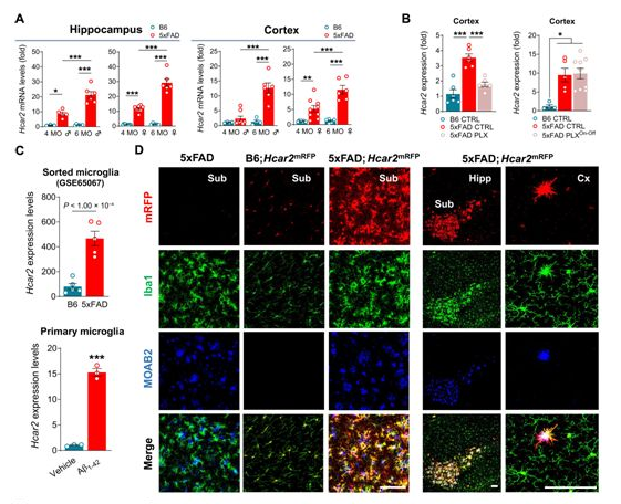 誘導阿爾茨海默病中的小膠質細胞表達HCAR2。
