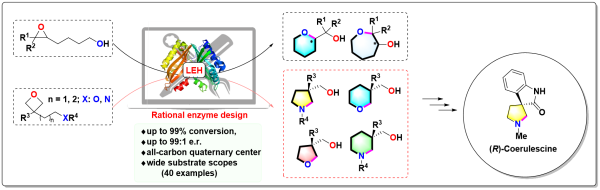 手性雜環(huán)化合物廣泛應(yīng)用于合成化學(xué)、天然產(chǎn)物、醫(yī)藥、農(nóng)藥與材料等領(lǐng)域,其中手性氮/氧雜環(huán)化合物是許多生物及生理活性分子的核心結(jié)構(gòu)單元。目前關(guān)于手性氮/氧雜環(huán)化合物的合成主要涉及金屬催化與有機小分子催化,而近年來,通過計算設(shè)計與改造的生物催化方法已經(jīng)成為研究的熱點。