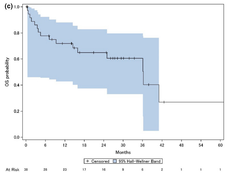 在針對恩曲替尼在ROS1融合陽性NSCLC中的長期療效和安全性的綜合分析中【3】顯示:在168名ROS1 TKI初治患者中,中位生存期隨訪時間為29.1個月。ORR為68%;中位DoR為20.5個月。中位無進展生存期(PFS)為15.7個月,中位OS為47.8個月。在25例可測量基線CNS轉移患者中,顱內ORR為80%(95%CI:59.3-93.2),中位顱內DoR為12.9個月,中位顱內PFS為8.8個月。在既往克唑替尼治療僅中樞神經系統進展的18例患者中,2例達到部分緩解(11%),4例病情穩定(22%)。在該隊列的 7 名可測量 CNS 疾病患者中,顱內 ORR 為 14%(1 例部分緩解)。