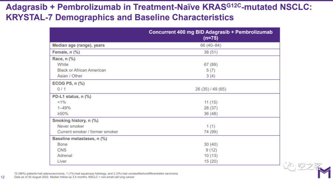 在Ph2臨床KRYSTAL-7試驗(yàn)中,共入組75例初治KRAS G12C突變的NSCLC患者,其中包含了PD-L1表達(dá)水平不同的亞組。