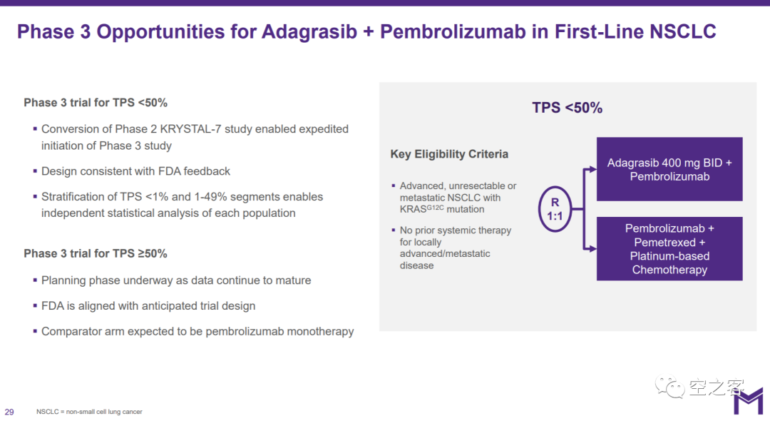 于是乎,TPS<50%就成立下一步的救命稻草,Mirati與FDA討論后決定1L NSCLC的三期就針對(duì)此人群。