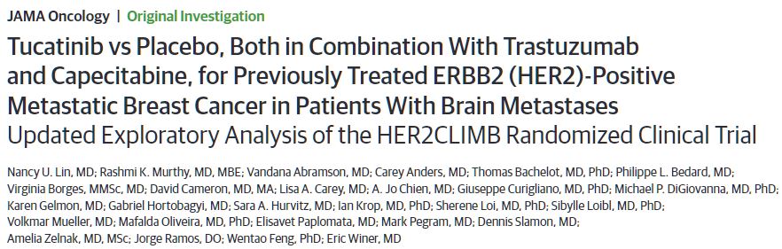 JAMA Oncol:Tucatinib聯合曲妥珠單抗和卡培他濱治療ERBB2+腦轉移乳腺癌