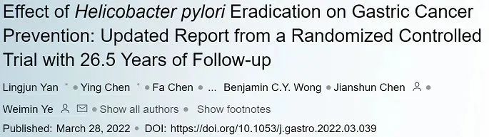 近日,發表在Gastroenterology雜志的一項研究,在高風險人群中評估根除幽門螺旋桿菌治療對胃癌發生率和致死率的長期影響。