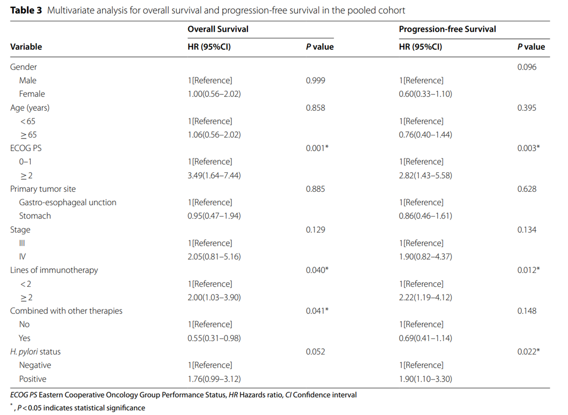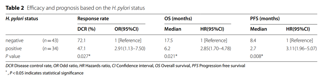 BMC Cancer:幽門螺桿菌能影響晚期胃癌免疫治療結(jié)局?PFS和OS均可相差3倍!