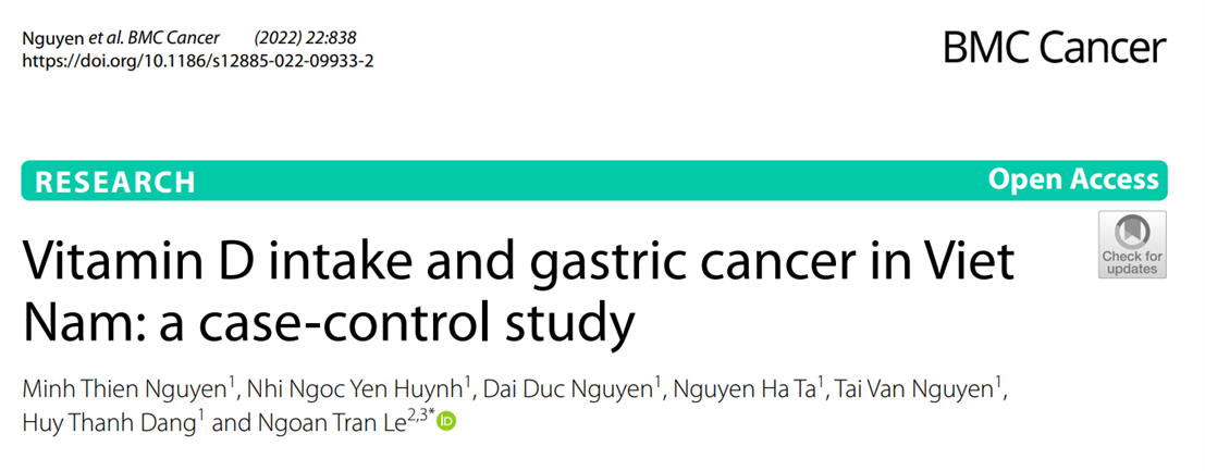 Nguyen MT, Huynh NNY, Nguyen DD, Ta NH, Van Nguyen T, Dang HT, Le NT. Vitamin D intake and gastric cancer in Viet Nam: a case-control study. BMC Cancer. 2022 Aug 1;22(1):838. doi: 10.1186/s12885-022-09933-2. PMID: 35915393; PMCID: PMC9341043.