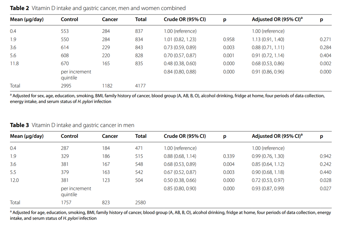總的來說,研究結果表明,攝入足夠的維生素D與越南人口患胃癌的風險較低有關。