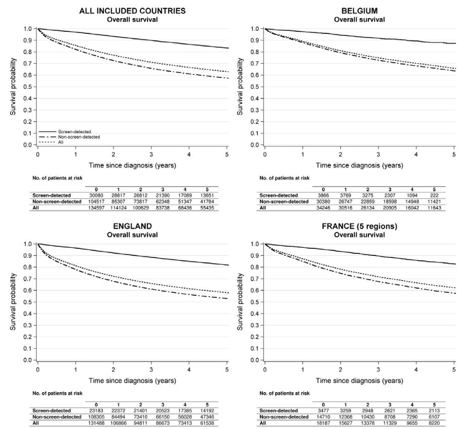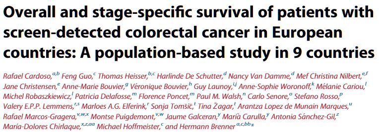 Rafael Cardoso, et al. Overall and stage-specific survival of patients with screen-detected colorectal cancer in European countries: A population-based study in 9 countries. The Lancet Regional Health. July, 2022. https://doi.org/10.1016/j.lanepe.2022.100458