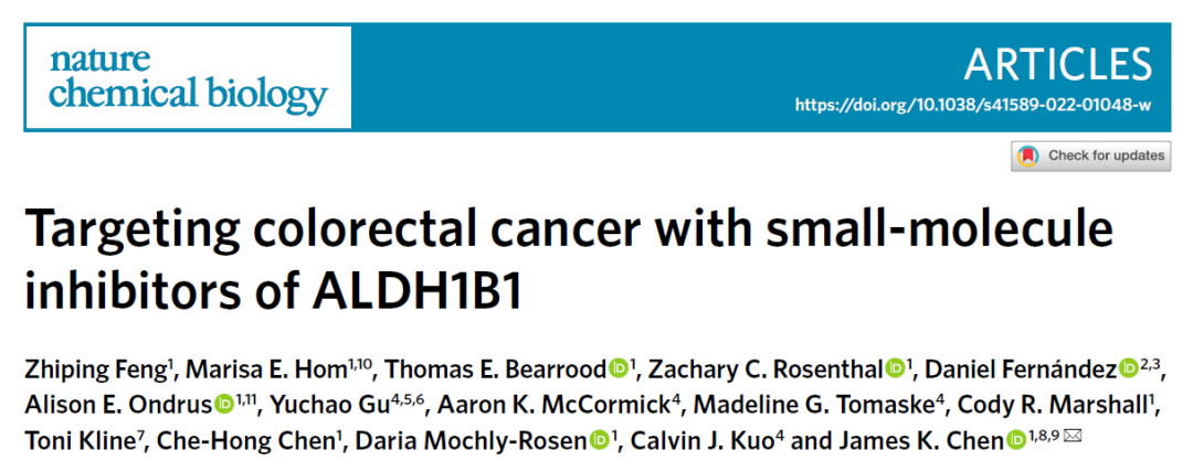 Nature Chemical Biology:結直腸癌治療新靶點——ALDH1B1