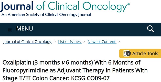 Kim Seung Tae,Kim Sun Young,Lee Jeeyun et al. vOxaliplatin (3 months 6 months) With 6 Months of Fluoropyrimidine as Adjuvant Therapy in Patients With Stage II/III Colon Cancer: KCSG CO09-07.[J] .J Clin Oncol, 2022, undefined: JCO2102962.