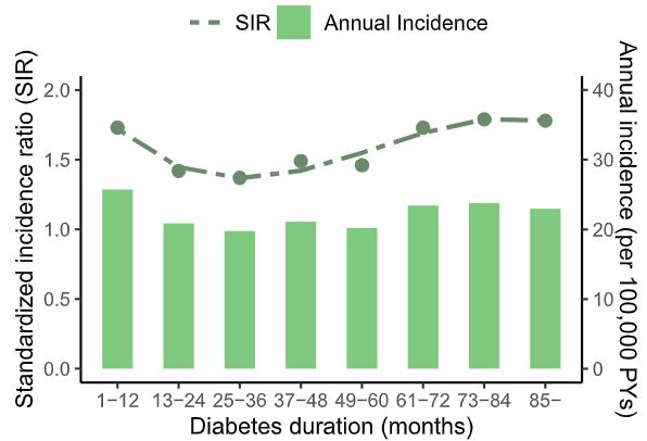 該研究的目的是估計新發 2 型糖尿病 (T2DM) 個體中胰腺癌的發病率,并評估胰腺癌風險與糖尿病發病年齡和糖尿病病程的關系。