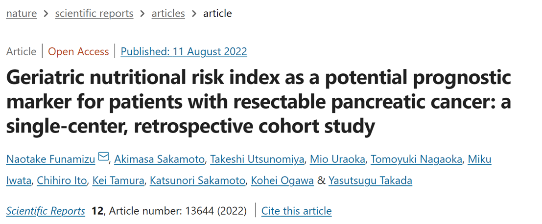 Funamizu, N., Sakamoto, A., Utsunomiya, T. et al. Geriatric nutritional risk index as a potential prognostic marker for patients with resectable pancreatic cancer: a single-center, retrospective cohort study. Sci Rep 12, 13644 (2022). https://doi.org/10.1038/s41598-022-18077-z
