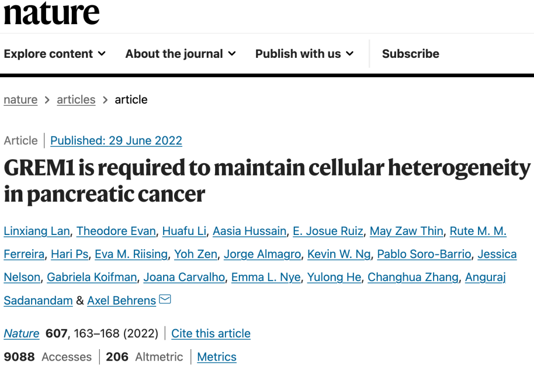 美國胰腺癌患者的5年生存率是11%,是名副其實的癌王。 近日,Behrens團隊在頂級期刊《自然》發表重要研究成果,GREM1的蛋白對胰腺癌的發生和發展極為重要。如果GREM1失活,胰腺上皮細胞在幾天之內就能變成胰腺癌細胞(間質化);而GREM1在癌細胞中過表達的話,癌細胞竟然幾乎全部都“上皮化”了,出現了間質上皮化的過程,胰腺癌它可