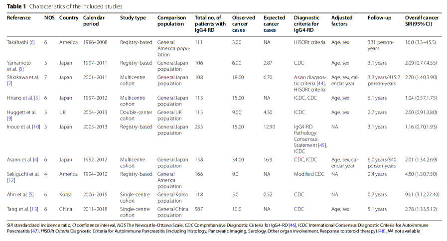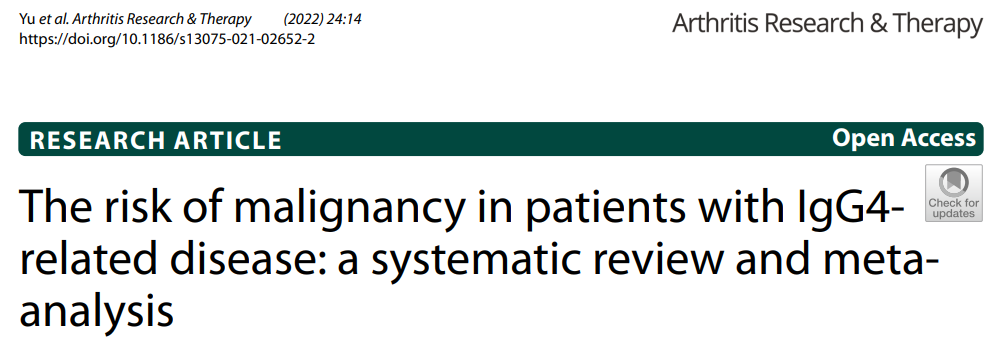 Tingfeng Yu, et al. The risk of malignancy in patients with IgG4-related disease: a systematic review and meta-analysis.