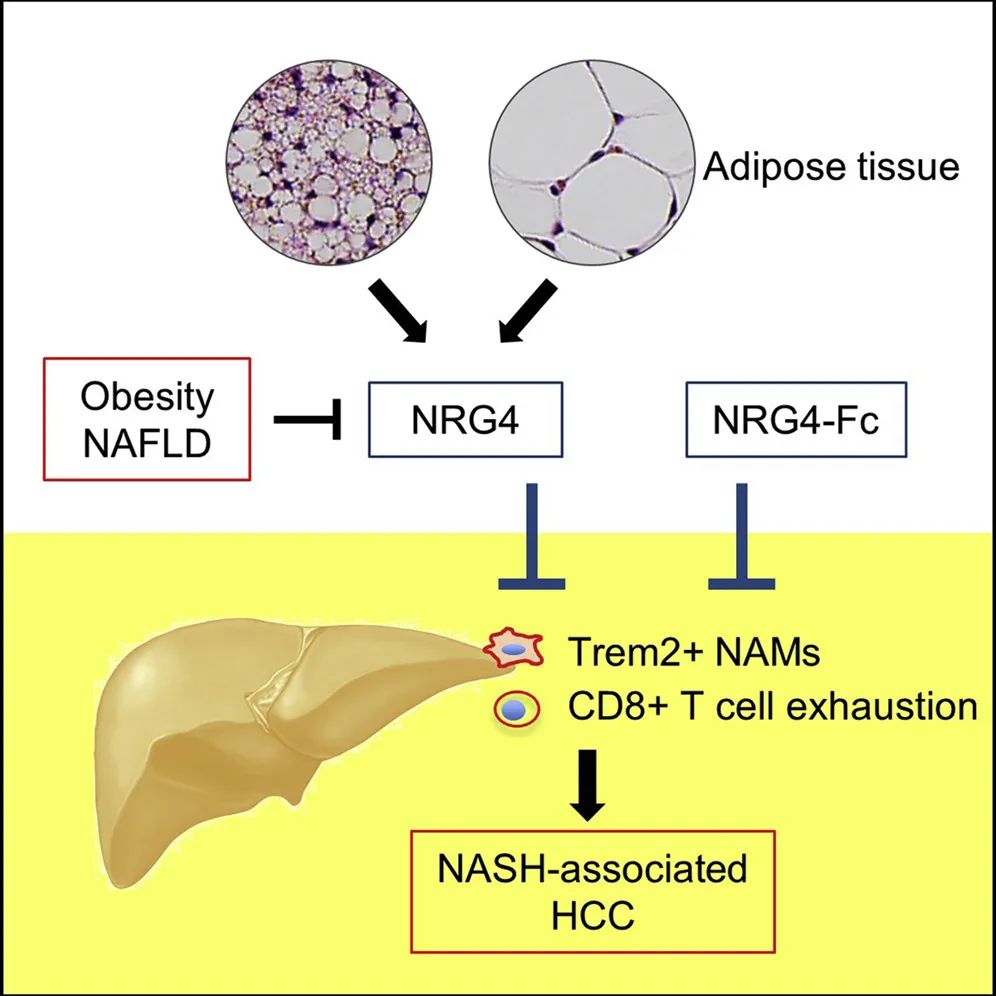 該研究發現,脂肪細胞分泌的一種激素NRG4能夠抑制NASH向肝癌的發展,而且還可以作為NASH相關肝癌的治療靶點,這一發現為開發針對肝細胞癌(肝癌的最主要類型)的療法提供了新方向。