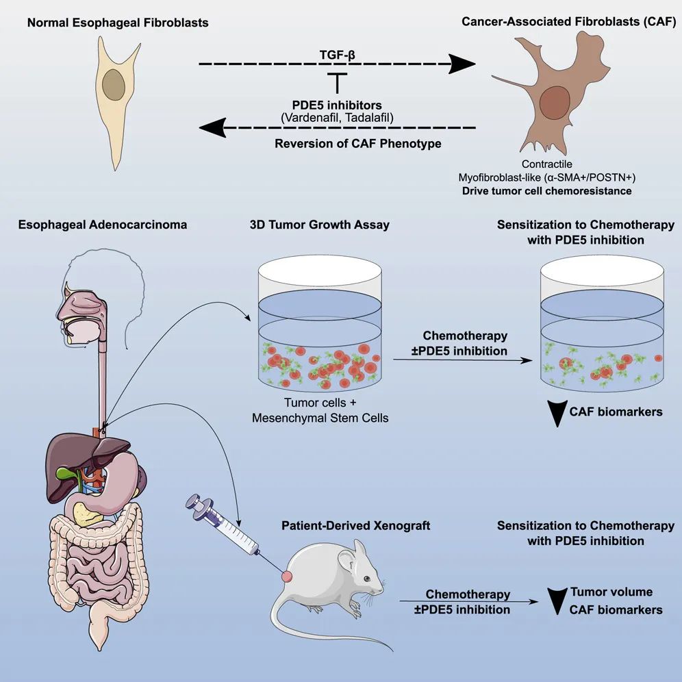 Benjamin P. Sharpe, et al. Phosphodiesterase type 5 inhibitors enhance chemotherapy in preclinical models of esophageal adenocarcinoma by targeting cancer-associated fibroblasts. Cell Reports Medicine, 2022.