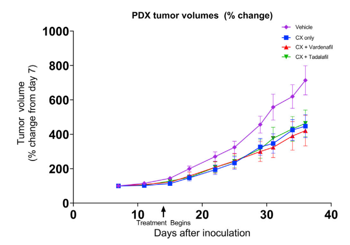 研究團隊進一步使用人源腫瘤異種移植模型測試了這種聯(lián)合治療,結(jié)果表明這種聯(lián)合治療沒有不良副作用,且能夠比單獨的化療更好地抑制和縮小腫瘤。